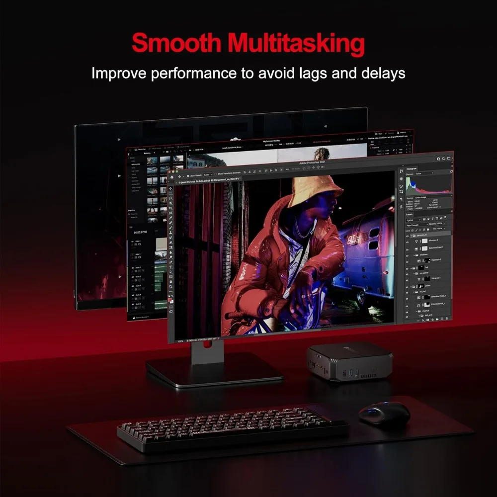 ♻️【Large Capacity and Up to 4TB Expansion Support】 N150 mini PC is equipped with 16GB DDR4 RAM and 512GB M.2 2280 SSD (up to 2TB), you can also add a 2.5" SSD/HDD (no included) to expand the capacity upgrade storage to 2TB to creating the memory wonderful safety data bank. Plenty of high-bandwidth RAM to smoothly run your games and photo- and video-editing applications, as well as multiple programs and browser tabs all at once. The flash-based SSD has no moving parts, resulting in faster start-up times and data access, no noise, and reduced heat production and power draw.